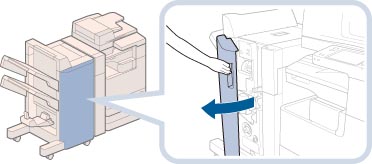 When closing the front cover of the finisher, be careful not to get your fingers caught, as this may result in personal injury.