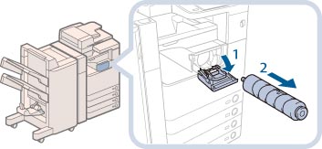 Firmly push the toner cartridge in until it stops. Otherwise, the toner cartridge will be pushed back out, and the toner replacement cover will not close.