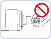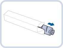 Never touch the tip of the toner cartridge or subject it to shock by hitting it. Doing so may cause the toner cartridge to leak.