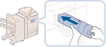 Pull the toner cartridge out halfway, and then remove it completely while supporting it and keeping it straight with your other hand from underneath.
