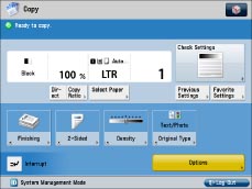 If [Department ID Management] or [Limit Functions] for [Department ID Management] is set to 'On', the startup screen may differ from the screen set to be displayed as default at startup.