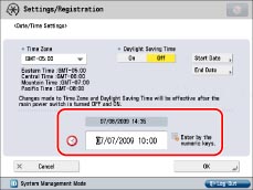 If you set Daylight Saving Time, the machine automatically sets the standard time of the machine one hour forward at the specified date and time.