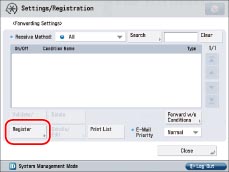 The forwarding settings are stored in memory if you press [OK] on the Register screen or the Edit screen.