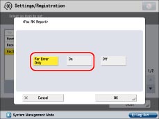Reports can be printed only if 11"×17", LGL, LTR, or LTRR (plain, recycled, or color) is loaded in a paper source whose settings in [Other] in [Paper Drawer Auto Selection On/Off] in [Function Settings] (Settings/Registration) are set to 'On'. However, if [Consider Paper Type] for [Copy] is set to 'On' in [Paper Drawer Auto Selection On/Off], you cannot print from a paper source with color paper specified. (See "Enabling Paper Drawer Auto Selection.")