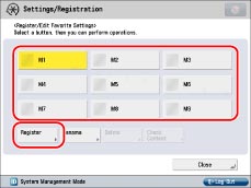 Select a button ([M1] to [M9]) to register settings → press [Register].