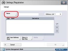 If the fax board is installed or the Remote Fax Kit is activated, you can also store fax numbers and locations to store the file in a group address.