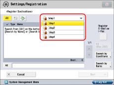 The number of search results displayed will not exceed the maximum limit set for <Max Addresses to Search> in [Register LDAP Server] in [Set Destination] (Settings/Registration). If the desired destination is not displayed, either increase the <Max Addresses to Search>, or change the search criteria. (See "Registering an LDAP Server.")