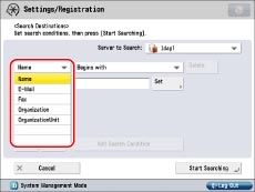 The organization/organization unit can be used as search categories only if the information has been registered on the LDAP Server.