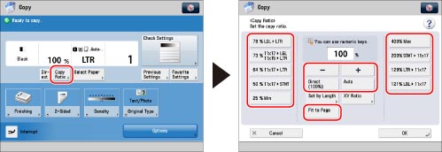 If you set [Auto], manually select a paper size. If you do not select a paper size, the copy ratio is automatically set to match the paper loaded in Paper Drawer 1 or the right paper deck of the main unit.
