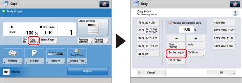 You can enter the width or length of the original size. If you enter the width for the original size, make sure to enter the width for the copy size, and vice versa.