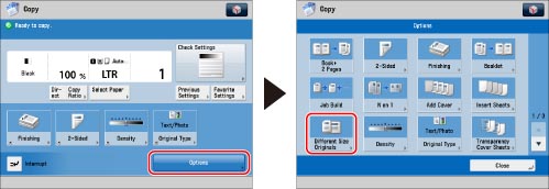 2-Sided] with [Different Size Originals], copies will be printed as one-sided copies on paper of their respective sizes. |