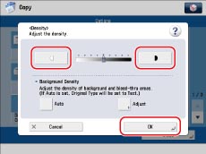 If you change the density in [Options], adjusting the density during copying may not have any effect on the output.