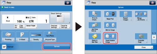 To use the Superimpose Image mode, the image form must be registered in the machine beforehand. (See "Registering Forms for the Superimpose Image Mode.")