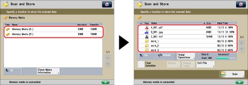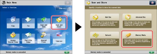 The default setting for displaying memory media is 'Off'. To use memory media, set [Store Location Display Settings] to 'On'. (See "Store Location Display Settings.")
