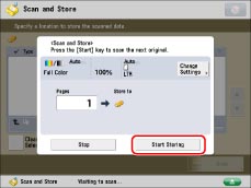 You can scan and store up to 999 pages at one time. If two-sided originals are scanned using the feeder, you can store up to 1,000 pages. Once the maximum number of originals you can scan is reached, a message asking whether to store appears.