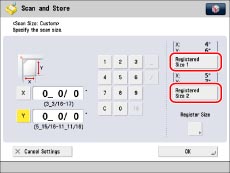 Press [Register Size] → [Registered Size 1] or [Registered Size 2].