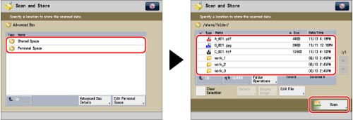 Press [Scan and Store] → [Advanced Box].