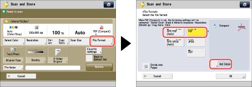 This mode is only available for storing files in the Advanced Box, the Advanced Box of another imageRUNNER ADVANCE machine on the network, or memory media.