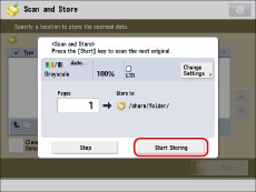 You can scan and store up to 999 pages at one time. If two-sided originals are scanned using the feeder, you can store up to 1,000 pages. Once the maximum number of originals you can scan is reached, a message asking whether to store appears.