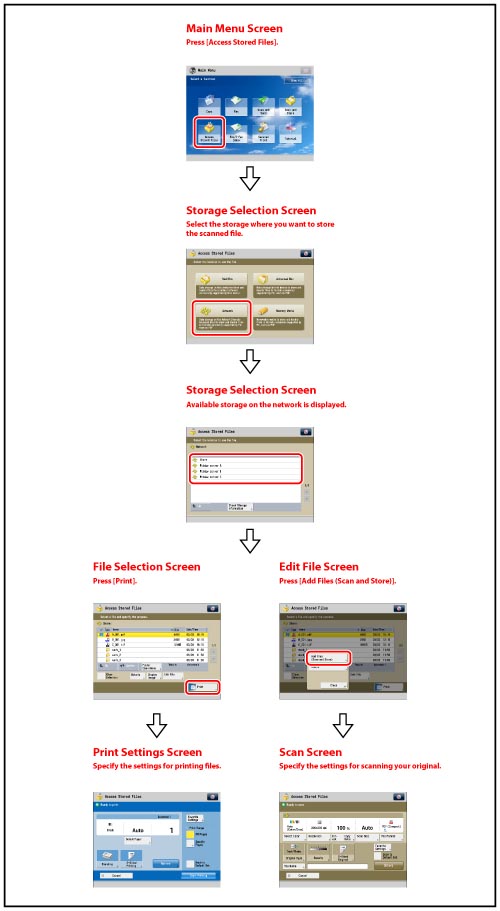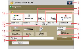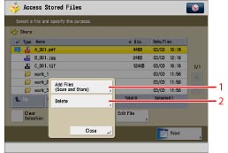For the procedure regarding [Add Files (Scan and Store)] and instructions on operating the Scan screen, see "Adding a File (Scan and Store)" and "Flow of Scan and Store Operations."