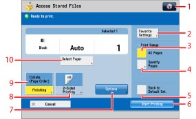 Press to cancel all settings. (The machine restores the default settings for Access Stored Files.) |