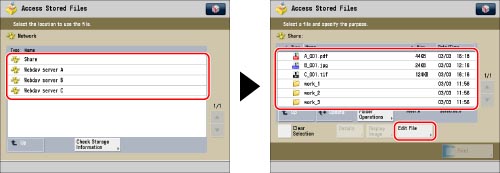 Press [Access Stored Files] → [Network].
