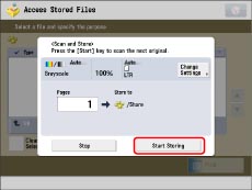 If the following screen is displayed, after the last batch of originals is scanned, press [Start Storing].