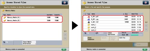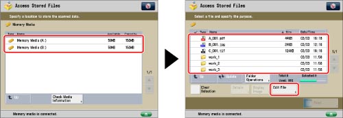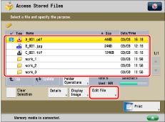Select the desired memory media → select the directory where you want to store the file → press [Edit File].