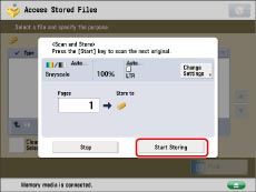 If the following screen is displayed, after the last batch of originals is scanned, press [Start Storing].