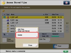 Select the desired memory media → select the directory where the file you want to delete is stored.