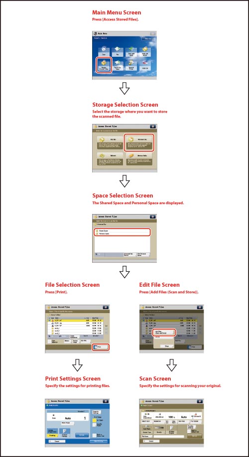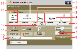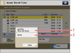 For the procedure regarding [Add Files (Scan and Store)] and instructions on operating the Scan screen, see "Adding a File (Scan and Store)" and "Flow of Scan and Store Operations."