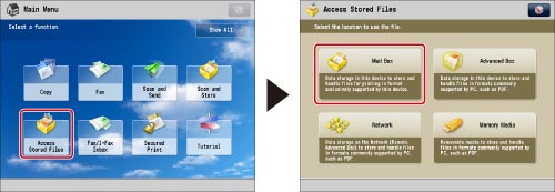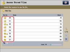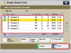You can only select multiple files when the files are stored in the same mail box. To print multiple files stored in different mail boxes, you need to move the files to one mail box beforehand. (See "Moving/Duplicating a File.")