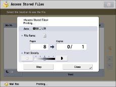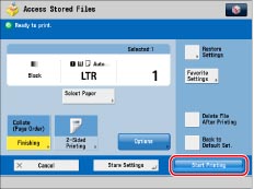 If you want to print a file stored in the machine from a computer or using [Store in Mail Box] of the Copy function with the settings that were set when the file was stored, do not print the file from the Change Print Settings screen. If you print the file from the Change Print Settings screen, the file may not be printed with the same settings that were set when the file was stored.