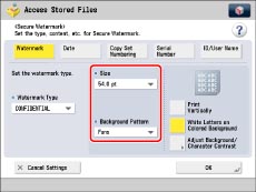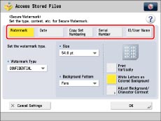 Text that you enter in [Custom] is not automatically saved. If you want to register your newly created secure watermark to be selected whenever necessary, press [Register] → enter the text to be registered.