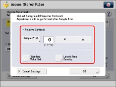 The area within the frame on the sample print is the output sample for the currently set relative contrast value.