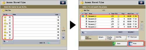 Select the desired Mail Box → select the desired file → press [Print].