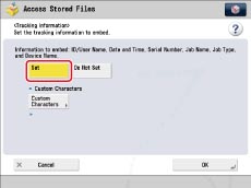 If [User Authentication] is selected, the Department ID and PIN which are currently being used to log in to the machine are embedded on the output. For SSO-H, the user name and password are embedded.