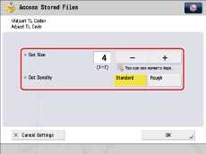 The appropriate dot size differs according to the environment or the content of the file. We recommend that you check documents embedded with a TL code to see whether you can correctly analyze the tracking information and whether the TL code restricts copying.