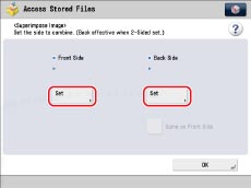 To specify the same settings as <Front Side> for <Back Side>, press [Same as Front Side].