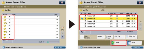 A maximum of 32 files stored in the same mail box can be selected and sent at the same time.