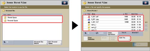 Select the desired storage space → select the desired folder level → press [Edit File].