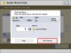 If the following screen is displayed, after the last batch of originals is scanned, press [Start Storing].