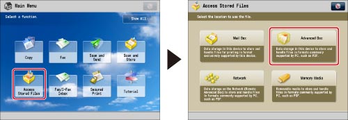 Press [Access Stored Files] → [Advanced Box].