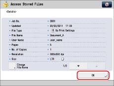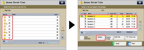 Select the desired Mail Box → select the desired file → press [Details].