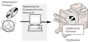 You can update the firmware of the machine to the most recent version using the "Register/Update Software" function from the Remote UI.