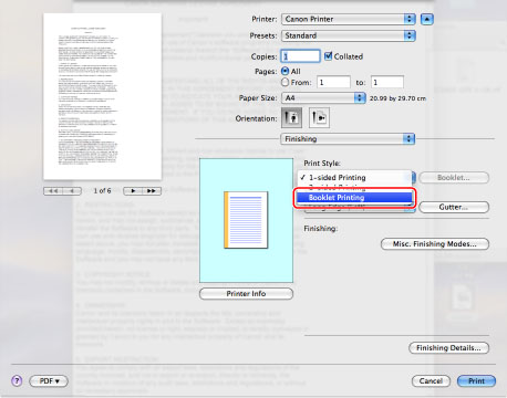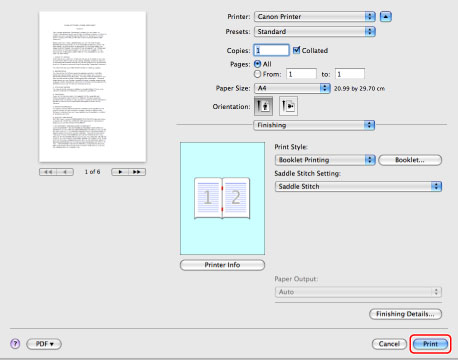 This section describes how to saddle stitch a document to have two pages printed on each side of a sheet. This means a 40 page document will be printed using 10 sheets of paper.
