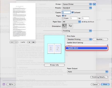 Select [Saddle Stitch] from the [Saddle Stitch Setting].