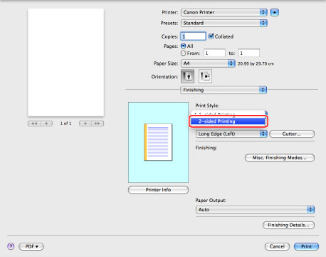 Select [2-Sided Printing] from the [Print Style] drop-down list.