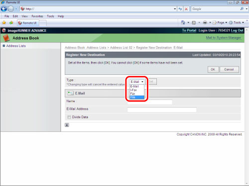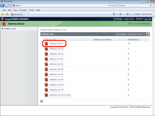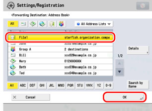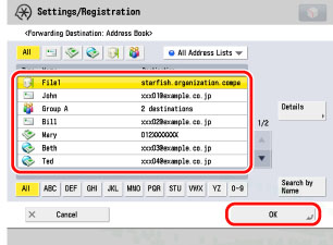 Click [Address Book] → select [Address List 01] on the address list screen.