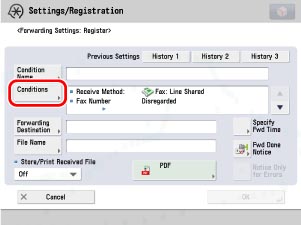 [Enable This Forwarding Condition] is equivalent to the [Validate/ Invalidate] button in the forwarding settings screen on your imageRUNNER ADVANCE machine.